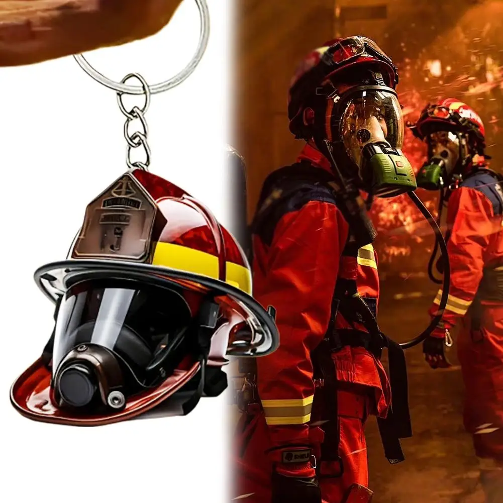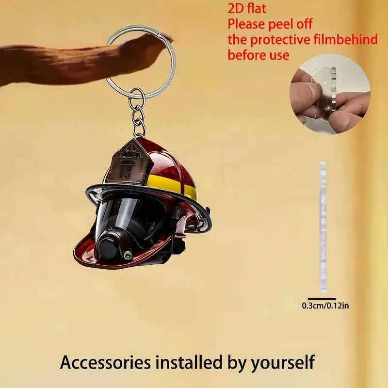 2D Firefighter Helmet Keychain Acrylic Flat Pendant Backpack Car Rearview Mirror Pendant Fire Station Art Decoration Gift