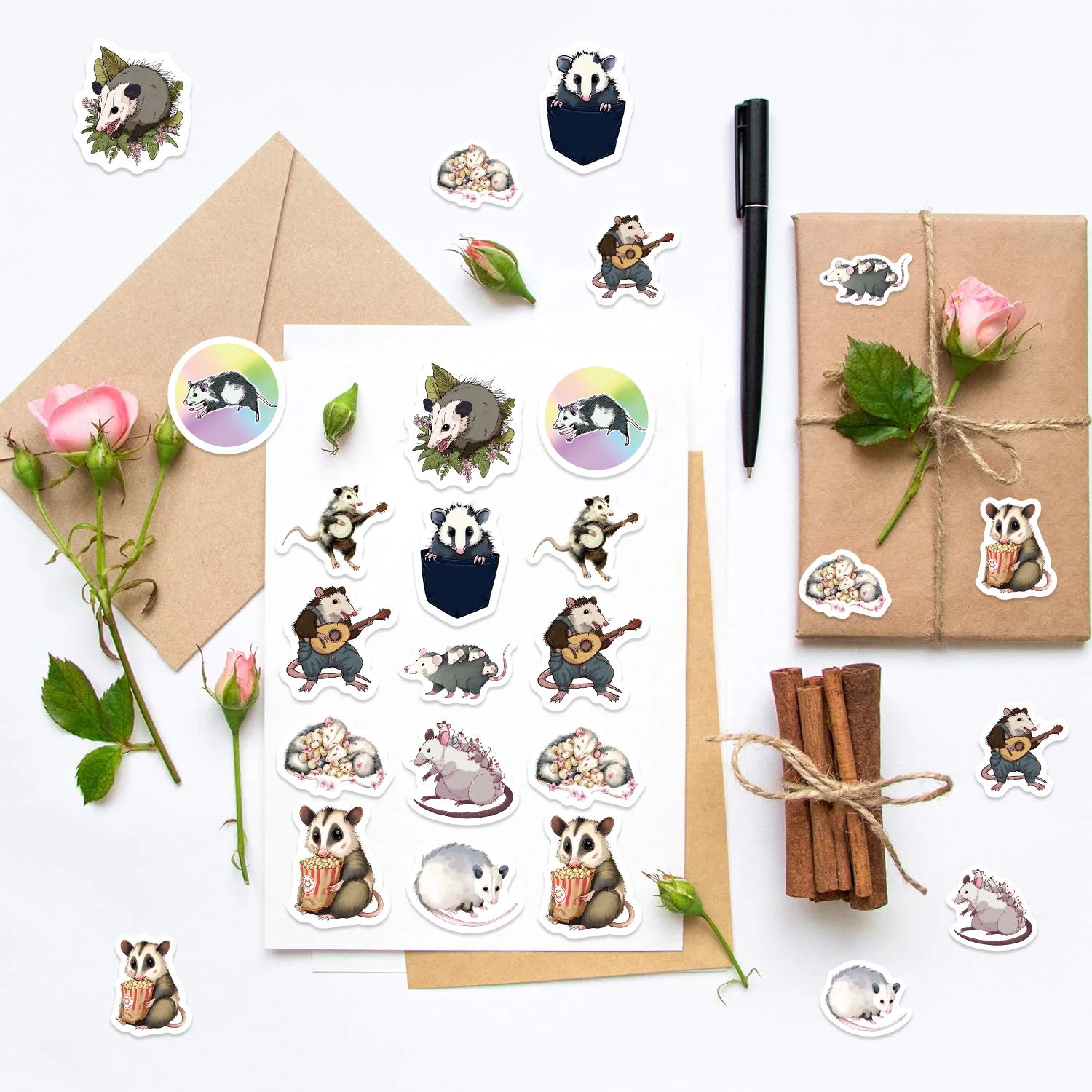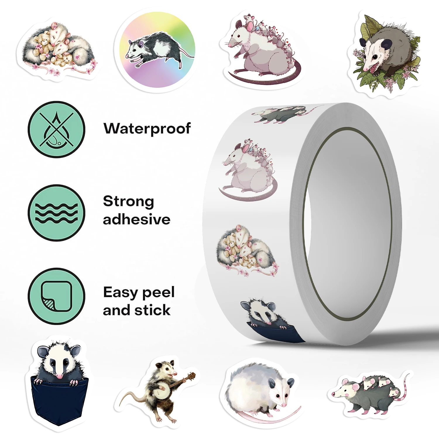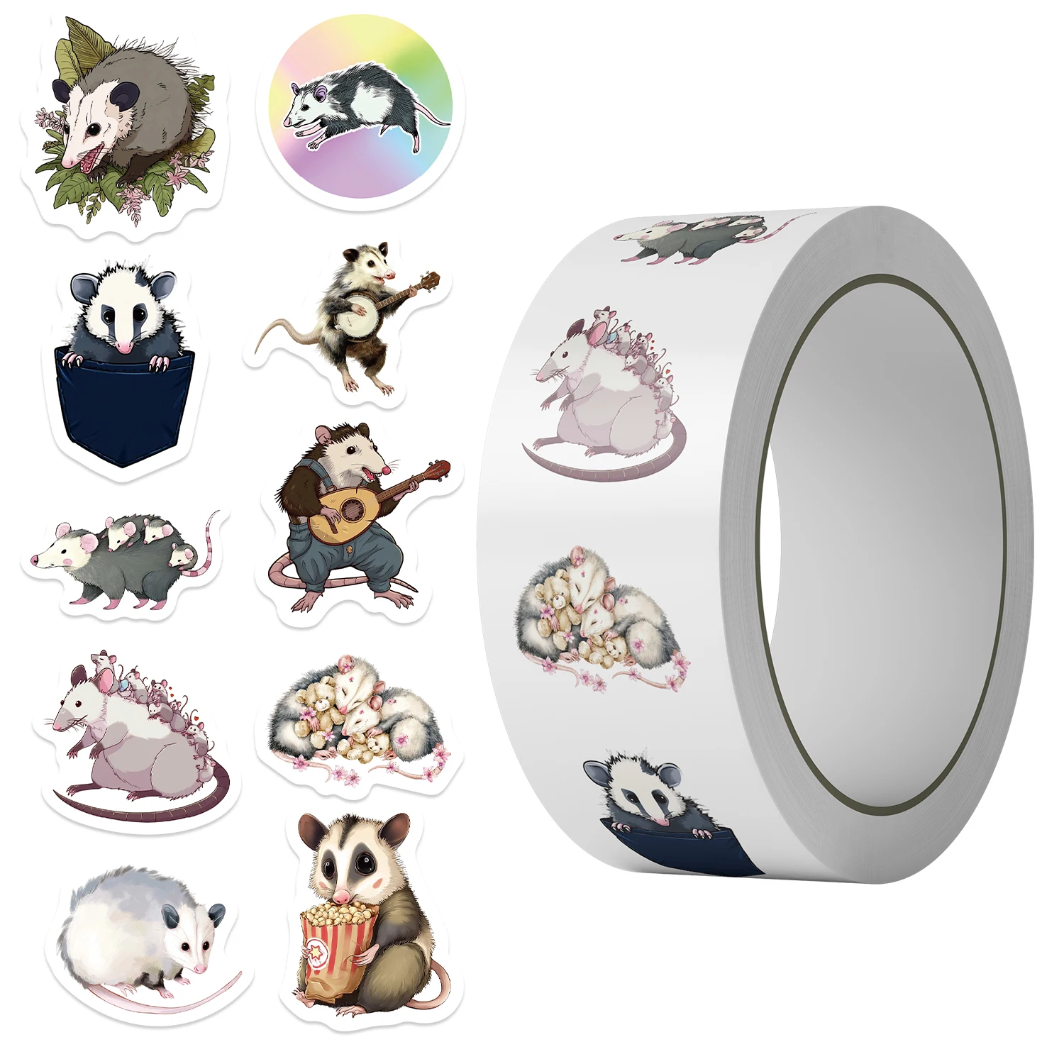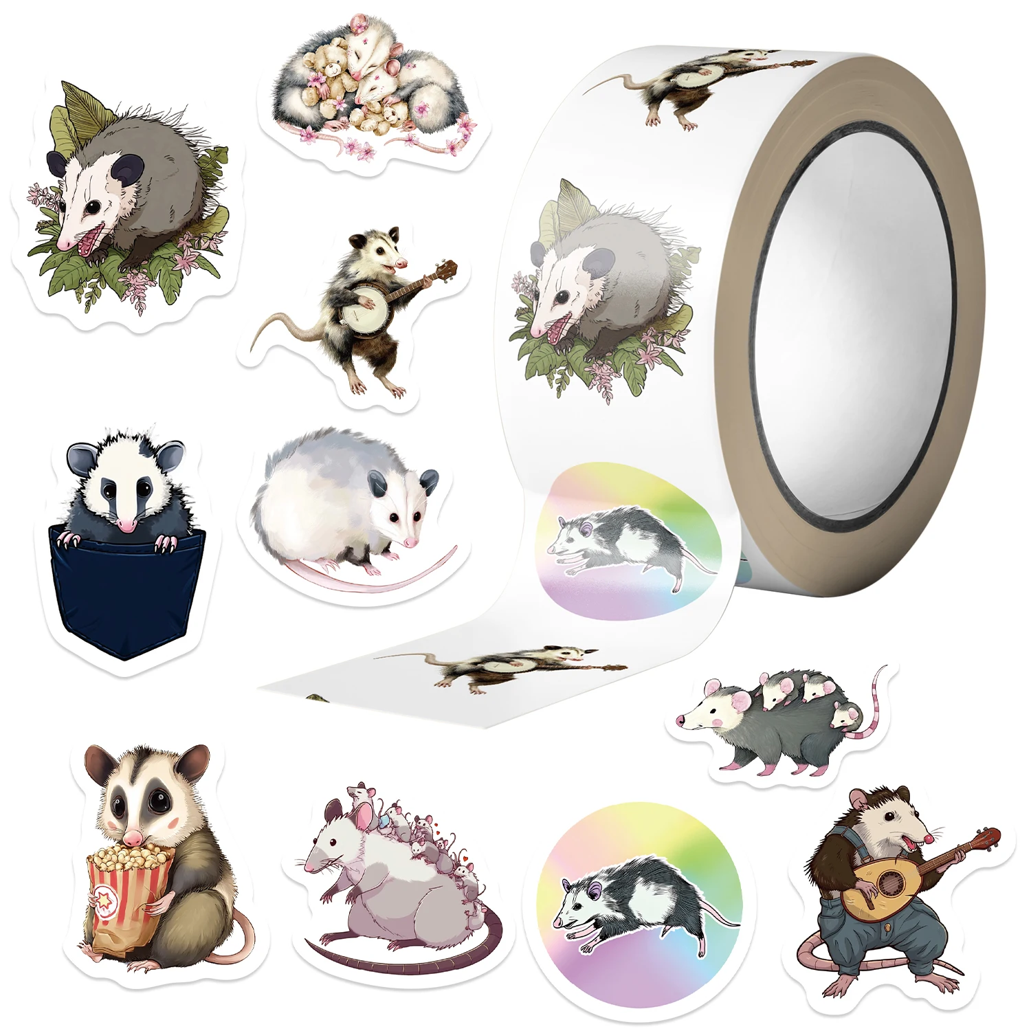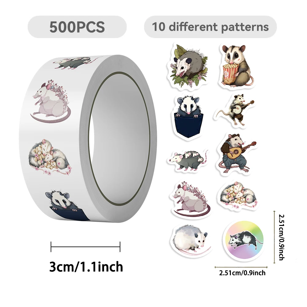 500pcs Cute Opossum Mouse Sticker Pack Funny Decals for Water Bottles, Skateboards, Phones Animals, Labels Party