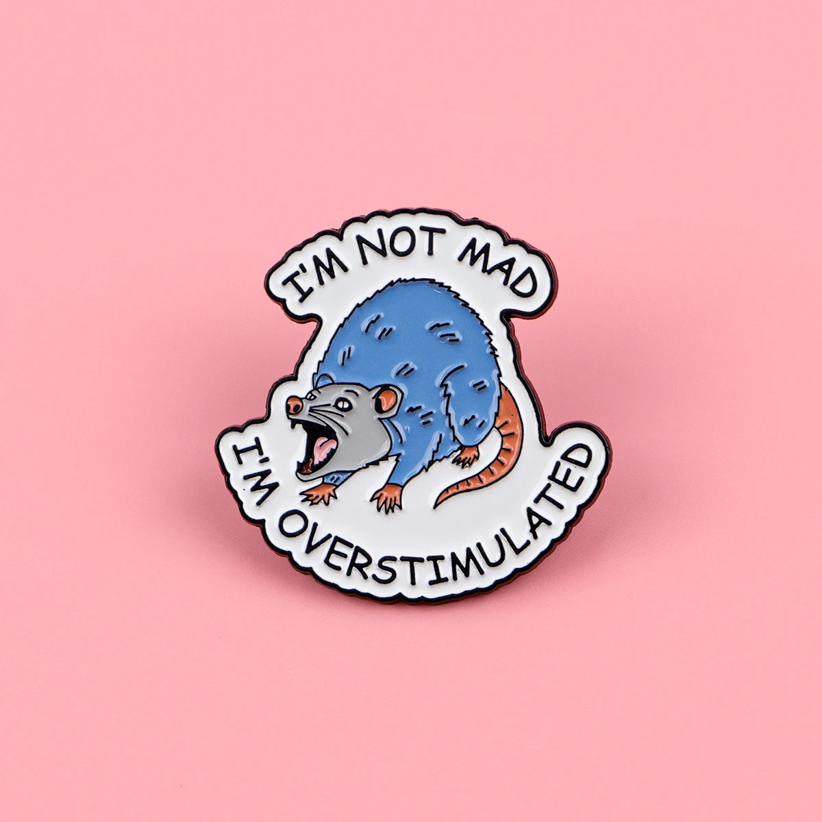 Cartoon Opossum Enamel Pin I'M NOT MAD Brooch For Coat Women's Brooches Fashion Lapel Badges Jewelry Gift for Friends
