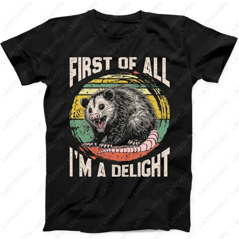 First of All I’m A Delight Opossum Best Seller Fun Gift Black Men Women TShirt Novelty Pattern Print modal Tees Streetwear Tops